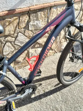 Bicicleta de montaña Rockrider 2.0 con cuadro de aluminio, suspensión delantera. Está impecable y la he cuidado hasta el máximo detalle (engranajes, cambio, engrasado, etc) Cambio de 21 velocidades (8 piñones y 3 platos). Cambio en las manetas GriftShift. Regalo cuenta kilómetros y bolsa triangular porta herramientas. Porta bidones incluido. Talla M
