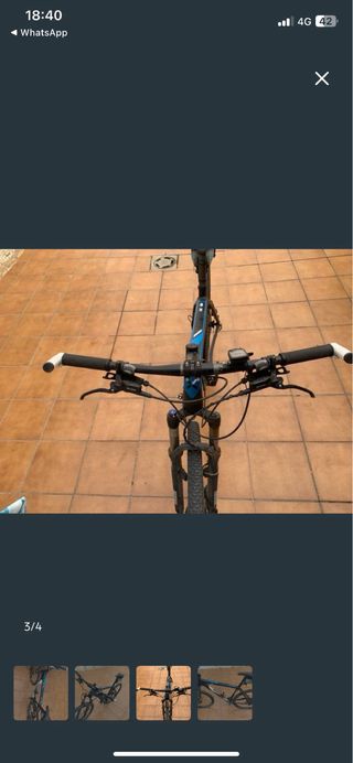 Se vende bici btwin 520 de adulto Talla del cuadro : L Tamaño de la rueda 27,5 pulgadas 7 velocidades 3 platos Freno de disco delantero i trasero ( cubiertas poco gastaradas pero tienen vida todavia ) . Amortiguacion delantera Lista para utilizarse inmediatamente no realizo envios trato en mano pago en efectivo gracias. No leer Palabra clave Bici bicicleta btt mountanbike dtb montaña TMB ciudad paseo colejio trabajo ciudad hibrida mixta treking btwin rockrider decathlon orbea trek boomerang cube fixie 27,5 28 29 700 340 5.0 cero fide bfold 6.8 trivan gotty cautri luck 5.1 bfold merida moma city elops