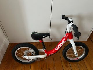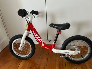 Bicicleta de equilibrio Woom 1 en color rojo, ideal para los primeros pasos en el mundo de las dos ruedas. - Cuadro de aluminio ligero. - Ruedas de 12 pulgadas. - Sillín ajustable en altura. - Puños de goma para un mejor agarre.
