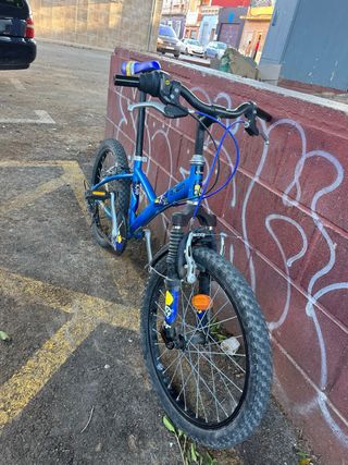 Bicicleta infantil de color azul, ideal para los más pequeños. - Cuadro de metal resistente. - Ruedas de 20 pulgadas. - Frenos delanteros y traseros. - Sillín ajustable.