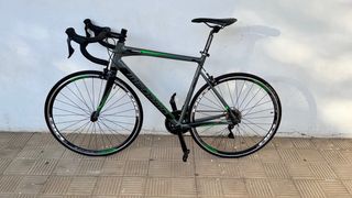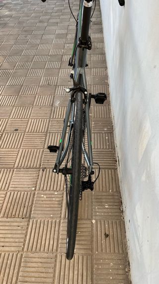 Bicicleta de carretera y gravel Triban RC 100 con manillar de carretera. Es una bicicleta para iniciarse en el mundo de la bici, ya que es válida para carretera o para gravel. - Cuadro de aluminio. - Frenos en V lo que facilita montaje de cubiertas más anchas para gravel - Cambio Shimano. - Ruedas de 700c. En su día se uso bastante ya que su dueño la usaba para repartir, lleva mucho sin usarse y se vende por falta de espacio ya que tengo 2 más, está sucia y tiene arañazos típicos de estas bicicleta, por lo demás perfecto.
