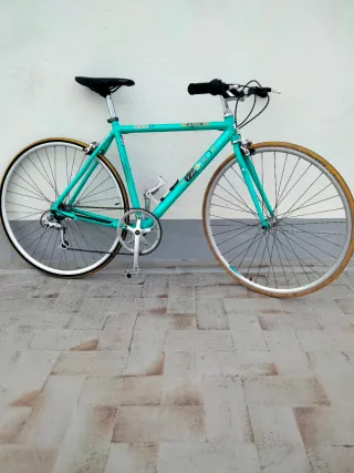 Bicicleta de carretera Bianchi Vento 602. - Cuadro de color verde menta. - Manillar de carretera. - Sillín negro. - Portabidón. - Tiene desperfectos de los años - completamente funcional