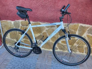 Bicicleta Claud butler explorer 400, todocamino / trekking en color blanco. Ideal para disfrutar de rutas y paseos. - Talla L - Cuadro de aluminio. - Ruedas de 28 pulgadas. - Suspensión delantera. - Cambio Shimano 3x7 V.