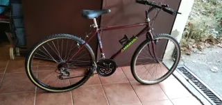 Bicicleta de montaña America con -Cambio Shimano. - Cuadro de color burdeos. - Ruedas todoterreno. - Portabidón