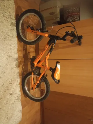 Bicicleta infantil de la marca Monty, color naranja. - Cuadro de aluminio. - Ruedas de 16 pulgadas. - Frenos delanteros y traseros.