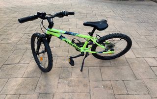 Bicicleta infantil de la marca Rockrider, ideal para iniciarse en el ciclismo. - Cuadro de acero. - Ruedas de 20 pulgadas. - Frenos V-brake. - Cambio de marchas. - Incluye portabidón.