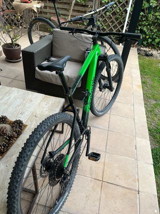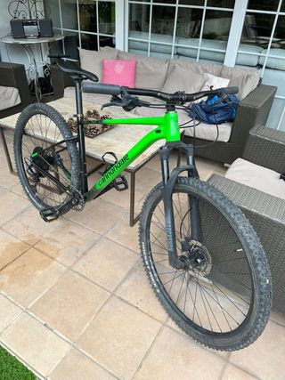 Bicicleta de montaña Cannondale con un llamativo color verde. - Cuadro de aluminio. - Ruedas de 29 pulgadas. - Frenos de disco hidráulicos. - Transmisión Shimano. Modelo: CANONNDALE trail SL3. Talla L