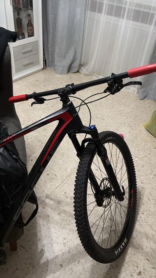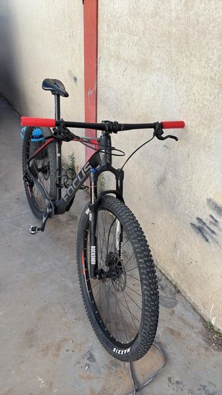 Bicicleta de montaña de color rojo, marca FOCUS Raven. - Frenos de disco. Focus Raven — MTB Carbono 29" Shimano XT / Fox Rhythm -Talla: 47 -Ruedas: 29" con neumáticos Continental Race King. -Horquilla: Fox Rhythm con bloqueo remoto. -Transmisión: Shimano XT 1x12 -Cuadro: Carbono Focus Raven -Frenos: Shimano XT hidráulicos. -Componentes: Tija, manillar y potencia de aluminio ligero. -Estado y uso: bastante cuidada, en muy buen estado , guardada en interior. -Venta en persona