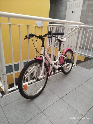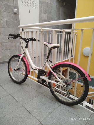 Bicicleta infantil de color blanco y rosa, ideal para los más pequeños. En muy buen estado ya que tiene poco uso. - Cuadro blanco con detalles en rosa. - Ruedas en buen estado. - Sillín ajustable.