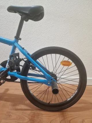 Bicicleta infantil BWTIN 900 RACING de 16 pulgadas en color rojo. Diseñada para niños de entre 4 y 6 años, con una altura de 105 a 120 cm. Este modelo se caracteriza por su ligereza gracias al cuadro de aluminio (pesa alrededor de 7,3 kg), lo que facilita su manejo y el aprendizaje. Incorpora el sistema "Stop Easy" de Decathlon, diseñado para manos pequeñas y que permite frenar fácilmente con dos dedos. Tiene marcas de uso pero está perfecta. La rueda trasera está lisa, regalo cubierta sin estrenar para cambiarla. Vendo por cambio a modelo mas grande