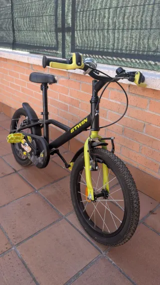 Bicicleta infantil B'Twin Dark Hero 500 de 16 pulgadas. Diseñada para los más pequeños, con un estilo llamativo. - Cuadro robusto. - Ruedas de 16 pulgadas. - Diseño Dark Hero. - Usada prácticamente nada