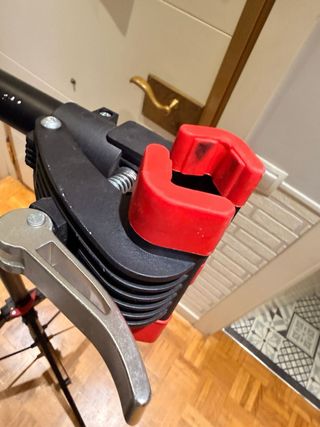 Bicicleta de montaña Rockrider en color rojo. Ideal para iniciarse en el ciclismo. Dos días de uso tiene todavía los pelitos de las ruedas. Nueva cuesta 266€ - Cuadro de aluminio. - Suspensión delantera. - Frenos de disco. - Pata de cabra - Timbre - Luz delantera - Funda de sillín acolchada