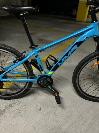 Bicicleta MMR Kibo en color azul, ideal para los más jóvenes. - Cuadro de aluminio. - Frenos de disco. - Suspensión delantera. - Ruedas de 24 pulgadas. - Recomendad para altura entre 1,30 y 1,50 m - Incluye portabidones instalado y timbre