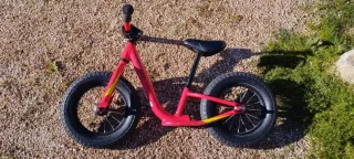 Vendo bicicleta de equilibrio Specialized Hotwalk para niños/as. Está en buen estado de funcionamiento, lista para usar. Ha sido utilizada por un crío, por lo que tiene rascazos y marcas estéticas normales del uso, pero nada que afecte a su funcionamiento o seguridad. Se puede ver en las fotos. Es una bici resistente, ideal para que los peques aprendan a mantener el equilibrio antes de pasar a una bicicleta con pedales. Muy cómoda y manejable. Características: Marca: Specialized Modelo: Hotwalk Ruedas de 12” Cuadro ligero Peso aprox 4,2 kg Color: rojo Con ella vendo casco rojo. Precio original más de 160€.