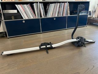 Portabicicletas original de la marca BMW, diseñado para transportar bicicletas de forma segura. - Fabricado en aluminio y plástico resistente. - Soporte ajustable para el cuadro de la bicicleta. - Sistema de fijación robusto. Dispongo también de las bacas donde se soporta el portabicicletas (BMW original) para modelo BMW X3