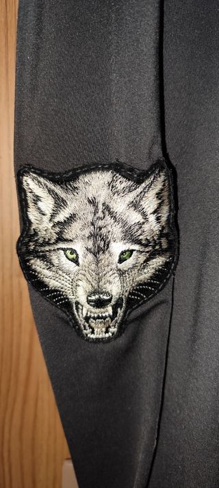 Culote maillot de invierno en talla XL con un diseño de lobo. - Color negro. - Parche de lobo en la pierna izquierda. - Detalles reflectantes en los laterales. - Interior de felpa muy calentito.