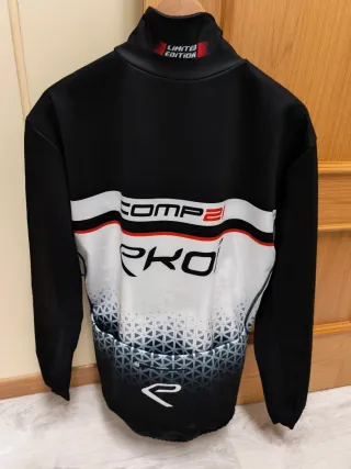 Conjunto de ciclismo de invierno de la marca Ekoi. - Talla XXL. - Diseño en negro, blanco y rojo. - Cremallera frontal completa. - Mangas largas. Chaqueta y culote como nuevo, con dos usos, excelente badana, edición limitada comp21