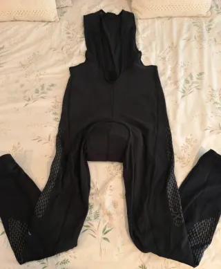 Culotte de ciclismo para invierno en color negro. - Talla S (ideal para alturas de 155-165 cm). - Tejido técnico para el frío. -Nuevo (usado solo 1 vez, y lavado), vendo porqué me equivoque de talla. -Disponible para probarlo, en Sevilla - Diseño con tirantes. - Cremalleras en los tobillos para facilitar el ajuste.