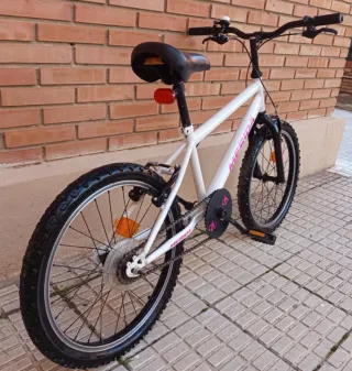 Bicicleta infantil, color blanco. Casi nueva, costó 120€, se vende a la mitad de precio. Es para 6-10 años aproximadamente. - Ruedas de 20 pulgadas. - Frenos delanteros y traseros. - Sillín ajustable.