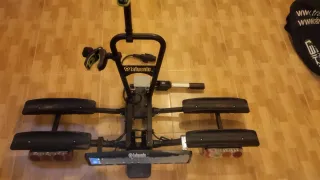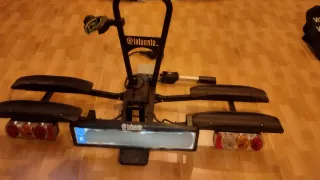 Está en buenas condiciones y es muy fuerte es para dos bicicletas de cualquier tipo y peso,funcionan perfectamente todas las luces juntas a la de la matricula, tiene adaptado un soporte hecho a mano con candado para la señal que hay que llevar obligatoriamente y no tener que ponerla atada a las bicis y arañarlas, tiene una llave para el enganche a la bola otra para los dos palos que sujetan las bicis que también doy un par de cuerdas para sujetarla desde la rueda y llave otra para el candado de la señal y así poder todo enganchado y seguro sin tener que guardarlo en el maletero. Tengo una bolsa original para guardarlo