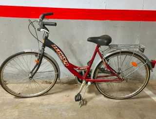 Bicicleta de paseo en color rojo, ideal para desplazamientos urbanos o paseos.esta completa a falta de colocarla al día - Cuadro de bicicleta de paseo. - Ruedas de 28 pulgadas. - Guardabarros delantero y trasero.cambio interior y freno trasero contrapedal - Portaequipajes trasero. - Reflectores naranjas en ruedas y pedales.