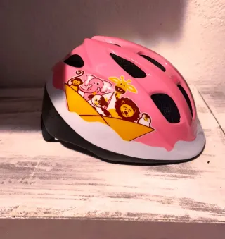 Casco de bicicleta infantil de la marca Btwin, en color rosa y con un divertido diseño de animales. - Talla XS (46-53 cm). - Ideal para niños y niñas.