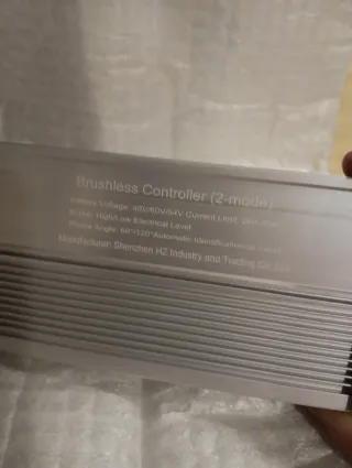 Controladora de motor eléctrico sin escobillas (brushless) de 2 modos. - Voltaje de batería: 48V/60V/64V. - Límite de corriente: 26A-30A. - Nivel eléctrico de freno: Alto/Bajo. - Ángulo de fase: 60°/120° con identificación automática. - Fabricante: Shenzhen HZ Industry and Trading Co.,Ltd.