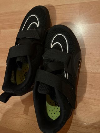 Zapatillas de ciclismo Nike en color negro. Talla 37. Cuentan con cierre de velcro para un ajuste seguro. - Diseño transpirable de malla. - Suela con tacos para mayor agarre. - Logo de Nike en el lateral.