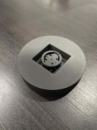 Base de soporte para ciclocomputador Garmin. - Color gris. - Diseño circular con hueco cuadrado central.