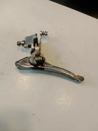 Desviador delantero Shimano para 2 o 3 platos de bicicleta de carretera clásica o Montaña válido para para tubos verticales estrechos por su corta abrazadera. Más piezas en mi perfil Campagnolo Record Otero Pentax Colnago Master Cinelli Pinarello Bianchi Columbus Reynolds Rossin Súper Ser Gios Mavic Kas Fagor l'eroica Razesa De rosa Marotias klein cannondale Simplex clásica