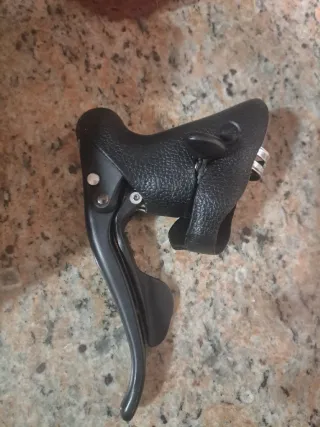 Conjunto de componentes de ciclismo Campagnolo. - Biela de carbono. - Maneta de freno. - Desviador trasero. - Piñón. - Anillo de ajuste.