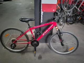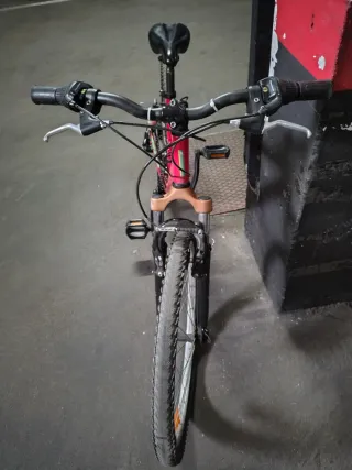 Poco uso Caracteristicas: • Cuadro de aluminio, Talla L ( ligero y resistente) • Ruedas de 29’’ con llanta de doble pared • 21 velocidades Shimano • Cambio trasero Shimano RD-TZ31A • Desviador delantero Shimano FD-TZ500 •Mandos Shimano TX30 • Piñón de siete coronas FW-28T • Frenos de disco mecánicos delanteros y traseros •Horquilla con suspensión y bloqueo •Kit antipinchazos instalado en ambas ruedas Incluyo: Casco, bidon para agua y funda acolchada para sillin