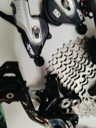 Kit de componentes Shimano para bicicleta. - Cambio trasero Shimano. - Desviador delantero Shimano. - Cassette de piñones Shimano.