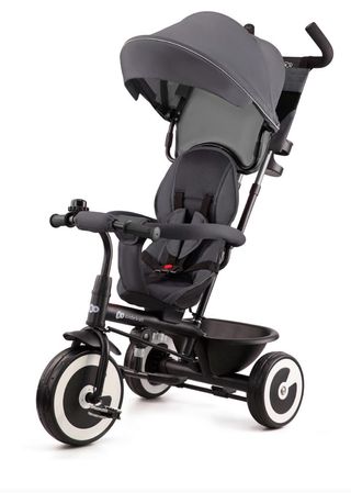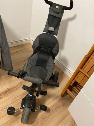 Triciclo evolutivo con diseño moderno y funcional. Completo con todos los accesorios. - Asiento acolchado y reclinable. - Barra de empuje desmontable. - Reposapiés. - Ruedas resistentes.