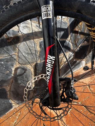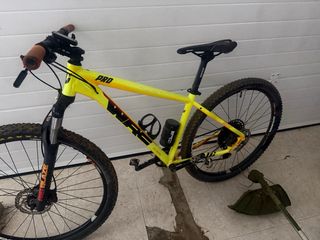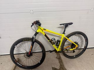 Bicicleta de montaña WRC Pro con ruedas de 29 pulgadas. Lleva mucho tiempo parada habría que hacerle una revision - Cuadro de color amarillo y naranja. - Horquilla delantera. - Portabidón negro.