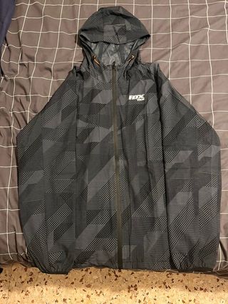 Chaqueta cortavientos con un diseño geométrico en tonos oscuros. - Capucha ajustable. - Cierre de cremallera. - Logo de Fox en el pecho. Talla xxl /xxxl