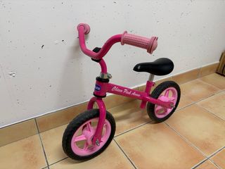 Bicicleta de aprendizaje color rosa de la marca Chicco. - Diseño ligero y manejable. - Ruedas de goma. - Asiento ajustable en altura.