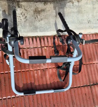 SE ENTREGA EN PERSONA Portabicicletas de metal para transportar bicicletas en el coche. Incluye correas de sujeción. - Estructura de metal. - Correas negras de sujeción.