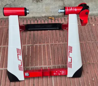 Rodillo de entrenamiento Elite. Se vende con los extras (ver fotos) - Estructura robusta en color blanco y rojo. - Diseño plegable para fácil almacenamiento. - Compatible con bicicletas de carretera y montaña.