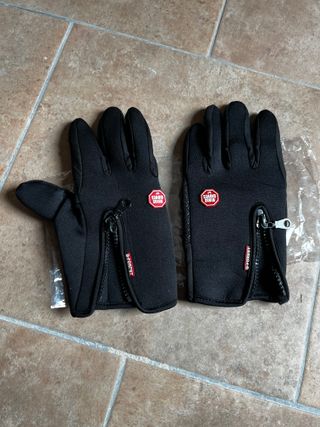 Guantes negros para ciclismo para invierno en talla M. Cuentan con un diseño moderno y funcional. Practicamente a estrenar, los compre pero me equivoque en la talla. - Cierre de cremallera lateral. - Detalle de logo B-FOREST en la cremallera. - Insignia circular roja con texto WIND STOPPER.