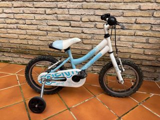 Bicicleta infantil con un diseño divertido en tonos azul y blanco. Perfecta para los más pequeños. Ruedas de 14” - Ruedines incluidos. - Cadena protegida. - Sillín ajustable.