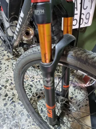 Bicicleta de gravel con horquilla Fox Factory 32. Montada así por dolor de espalda ruedas de 29 llantas shimano solo las llantas ya valen 190e montada en monoplato amortiguador en tija de sillín y suspensión fox pa bici es súper cómoda - Horquilla de suspensión FIT4. - Color naranja y negro.