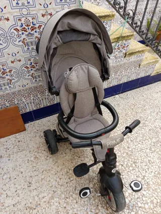 Triciclo infantil marca PRIME, ideal para los más pequeños. - Asiento acolchado con arnés de seguridad. - Capota protectora. - Reposapiés. - Manillar con empuñaduras. - Ruedas resistentes.