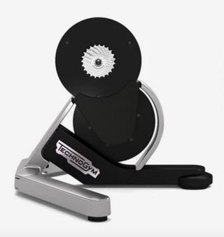 Rodillo de entrenamiento para ciclismo Technogym Mycycling. - Diseño moderno y robusto. - Acabado en negro y plateado.