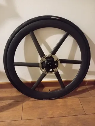 Rueda delantera bike ahead composites biturbo aero disc Center Lock Perfil llanta 50mm - Llanta full carbono UD muy ligera y de 6 radios diseño monobloque tipo lenticular o rueda de 3 aspas para cojer mucha inercia y velocidad - Incluye disco de freno tope gama shimano dura ace el último que han sacado y lleva ya apretada la tuerca center lock es justo para montarla en la bici o cabra y salir con ella, incluye también cubierta continental GP 5000 de 28mm A ESTRENAR NUNCA USADA vendo porque no me ha hecho falta no le voy a dar uso que alguien la pueda aprovechar en las últimas fotos salen los precios en nuevas ruedas carísimas!!!