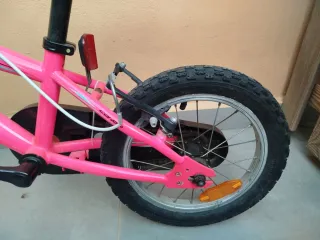 Bicicleta infantil Conor de 14 pulgadas en color rosa, ideal para los más pequeños. - Ruedas de 14 pulgadas. - Ideal niños/as de 3 a 6 años. - Viene con ruedines. - Color rosa vibrante. - Sillín ajustable. - Buen estado, siempre guardada en interior. - Frenos V- break. - Solo venta en persona y en Ibiza.