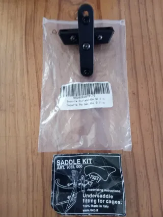 Soporte para sillín de bicicleta diseñado para portabidones. - Fabricado en metal negro. - Incluye tornillería para su montaje.