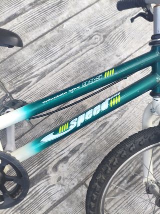 Bicicleta para niñ@ con ruedas de 16x1,75 cm. Es una bicicleta BH que era rosa y la pintamos de verde. - Color verde. - Incluye ruedines, timbre y casco NO SE HACEN ENVIOS
