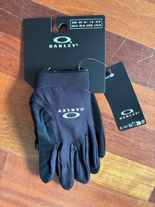 Guantes Oakley para ciclismo de montaña, ideales para la temporada de verano. Son de color negro y tallas M, L y XL disponibles - Diseño deportivo y ligero. - Material transpirable. - Perfectos para rutas en bicicleta.