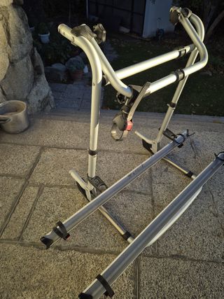 Portabicicletas compacto y universal para todas las paredes Ideal para la pared trasera con ventana permitiendo su apertura Para 2 bicicletas Carga máx. 60 kg. Posibilidad de ampliar hasta 4 bicicletas Color negro Incluido 2 carriles Rail Quick negros Brazos Bike-Block Pro 1 y 3 2 soportes para bloquear la bandeja cuando va plegada Cuerda sujeción del portabicis al Rail Quick. Clave: Thule, autocaravana, portabici
